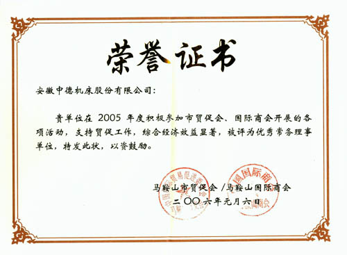 我公司獲2005年度市貿促會、國際商會優秀常務理事單位
